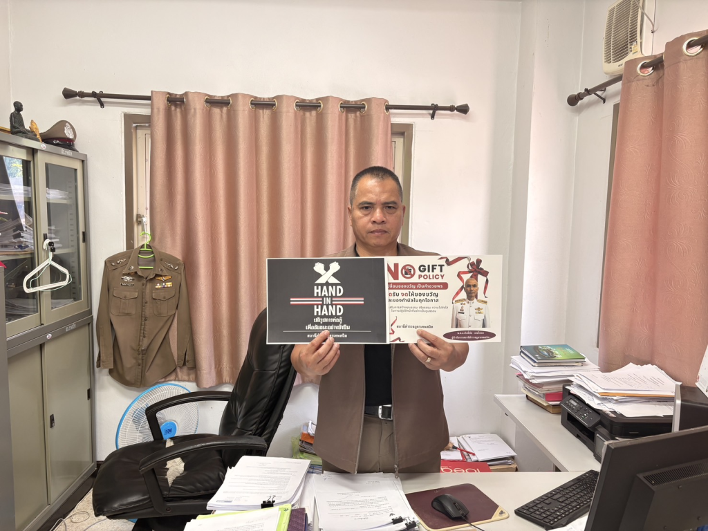 วันศุกร์ที่ 11 เมษายน 2568 พ.ต.อ.ศักดิ์ชัย เกษโกมล ผกก.สภ.เทพสถิต ได้มีการประชุม มอบนโยบายเกี่ยวกับการต่อต้านการทุจริตและต่อต้านการรับสินบนจากการปฏิบัติหน้าที่ โดยได้นำโปสเตอร์ Anti-Bribery Policy (No Gift Policy) มามอบให้กับข้าราชการตำรวจแต่ละสายงาน นำไปติดไว้ที่จุดต่างๆของสถานีตำรวจและตู้ยามเพื่อรณรงค์ต่อต้านการคอรัปชั่นและต่อต้านการรับสินบนจากการปฏิบัติหน้าที่ของข้าราชการตำรวจ