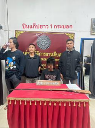 รับแจ้งจากชาวบ้านว่ามีกลุ่มวัยรุ่นชุมนุมกัน ดื่มเหล้า มั่วสุมเสพยาเสพติด พร้อมยิงปืนขึ้นฟ้าเวลากลางคืน ที่กระท่อมทางทิศตะวันออกหมู่บ้านโคกอนุ ต.นายางกลัก